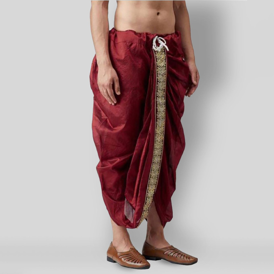 Men's ready-to-wear Dhoti. It is made of silk dupion fabric with a designer look giving it a traditional ethnic look.