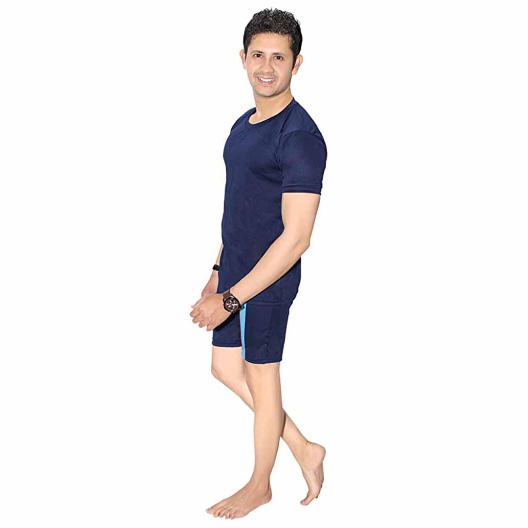 Care Instructions: Hand Wash Only Fit Type: Slim 1 Swim Jammer 1 T Shirt Regular Fit In Swimming Slim fit / Comfort Fit Drawstring closure elastic waist with adjustable band With one Pocket
