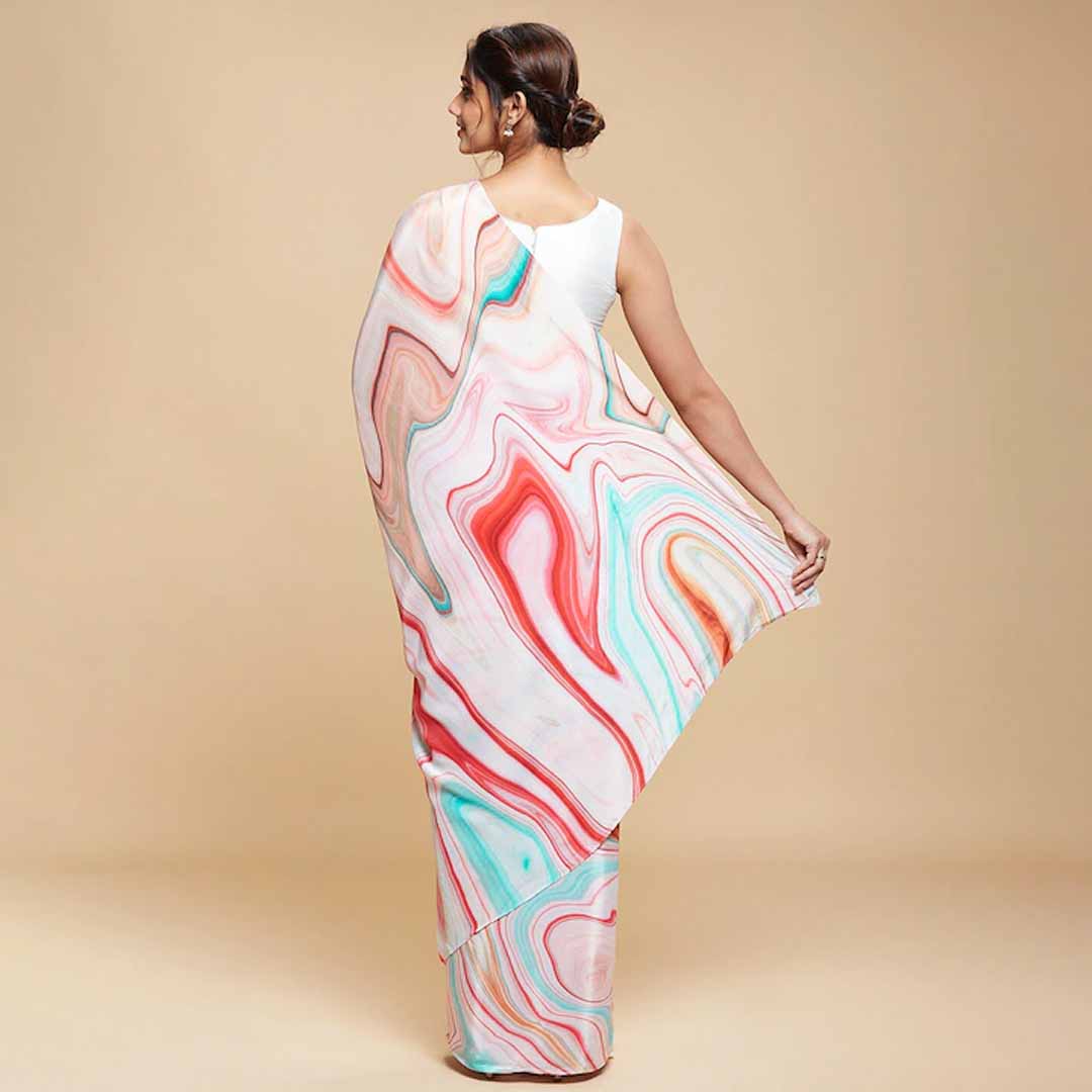 Pink and red saree Abstract printed saree with no border