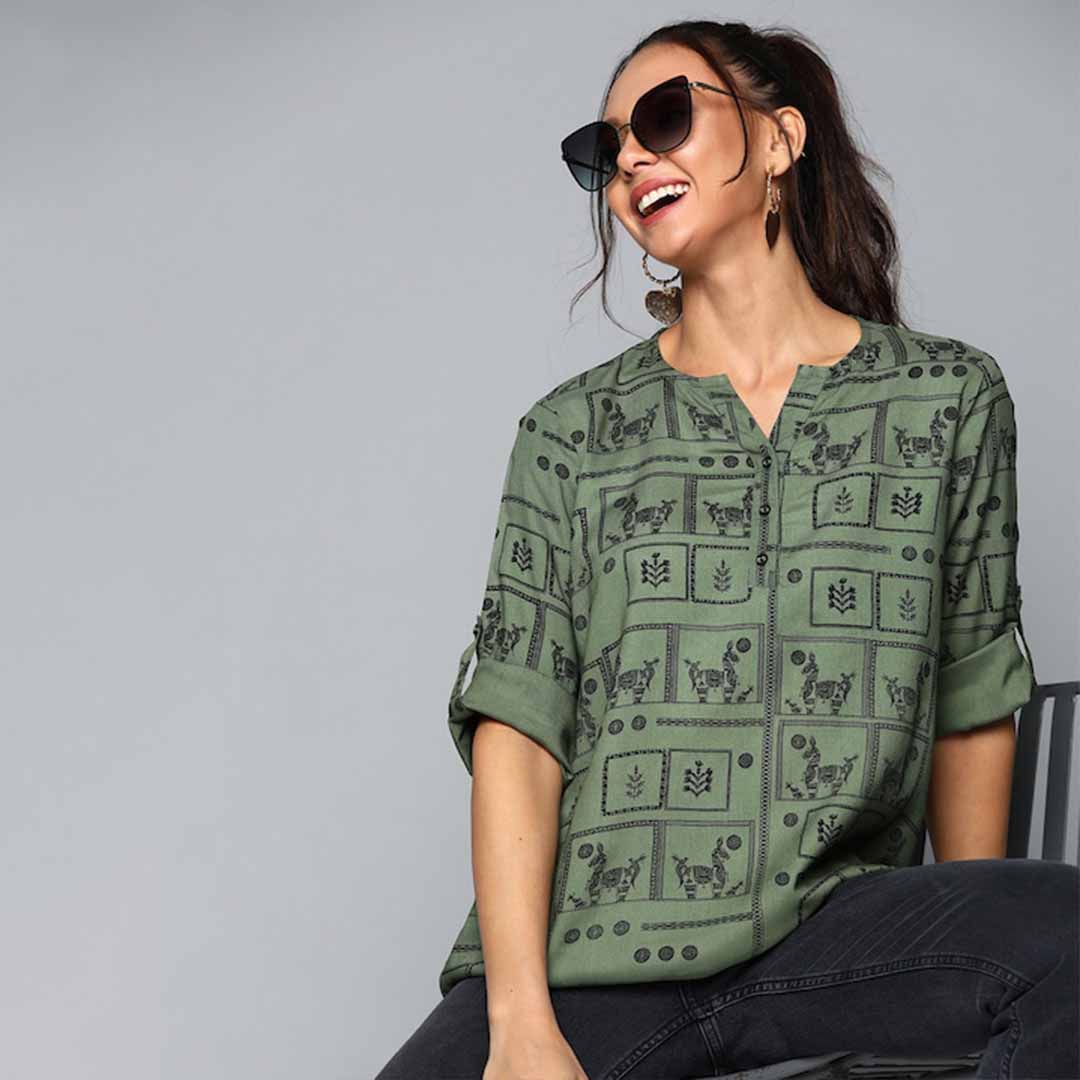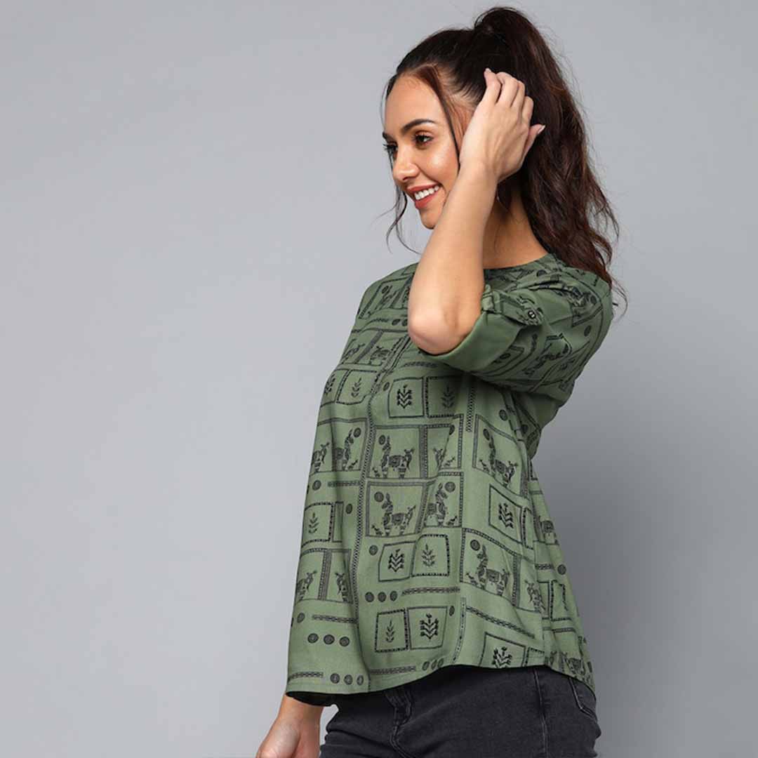 Olive green and black regular top