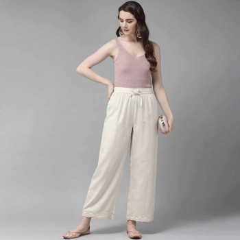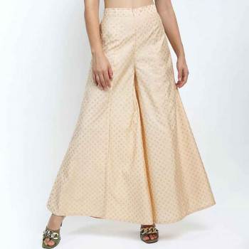 Yellow and off-white ethnic print wide leg cropped palazzos